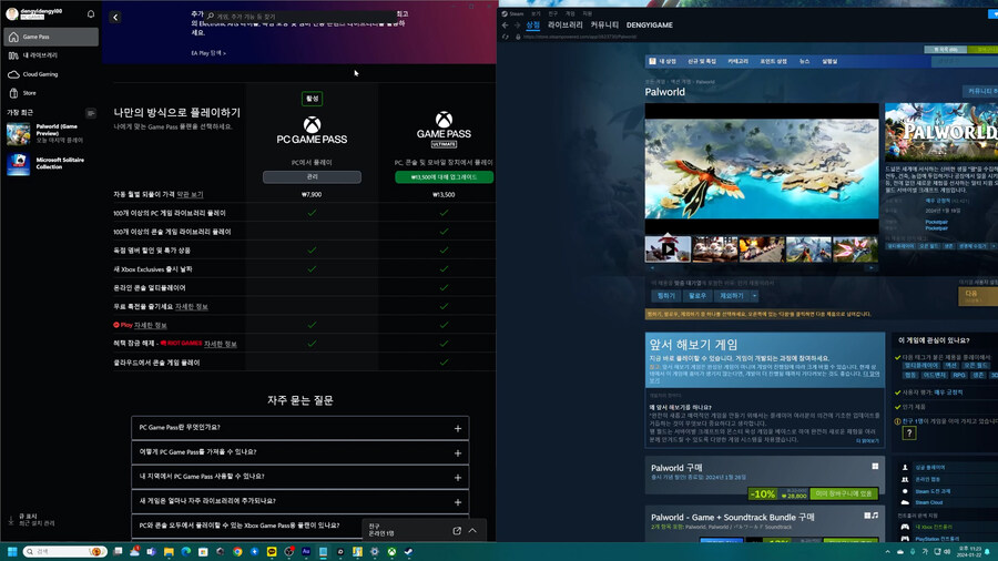 가격차이 : 엑박 게임패스(7,900원) / 스팀(28,900원)